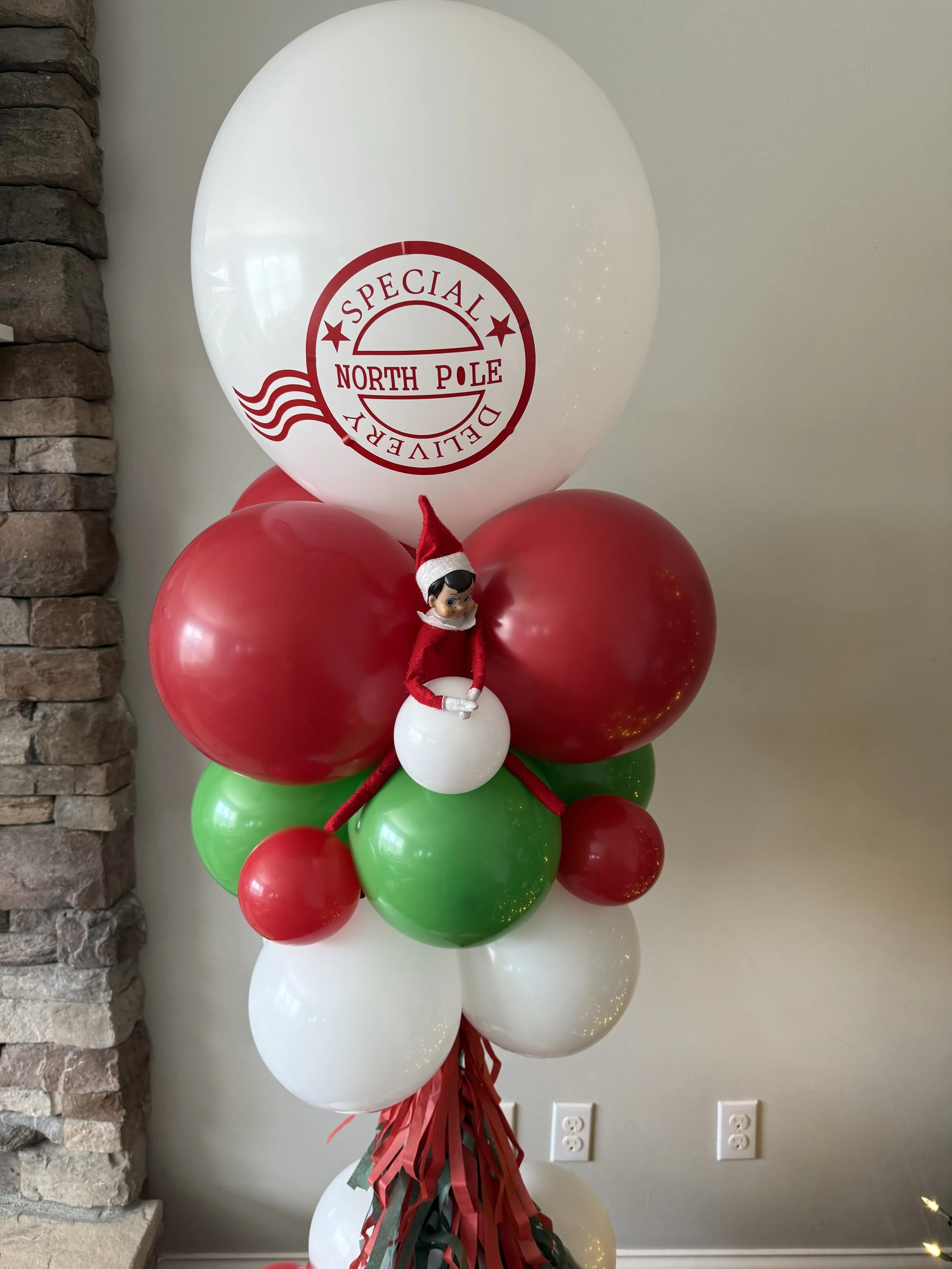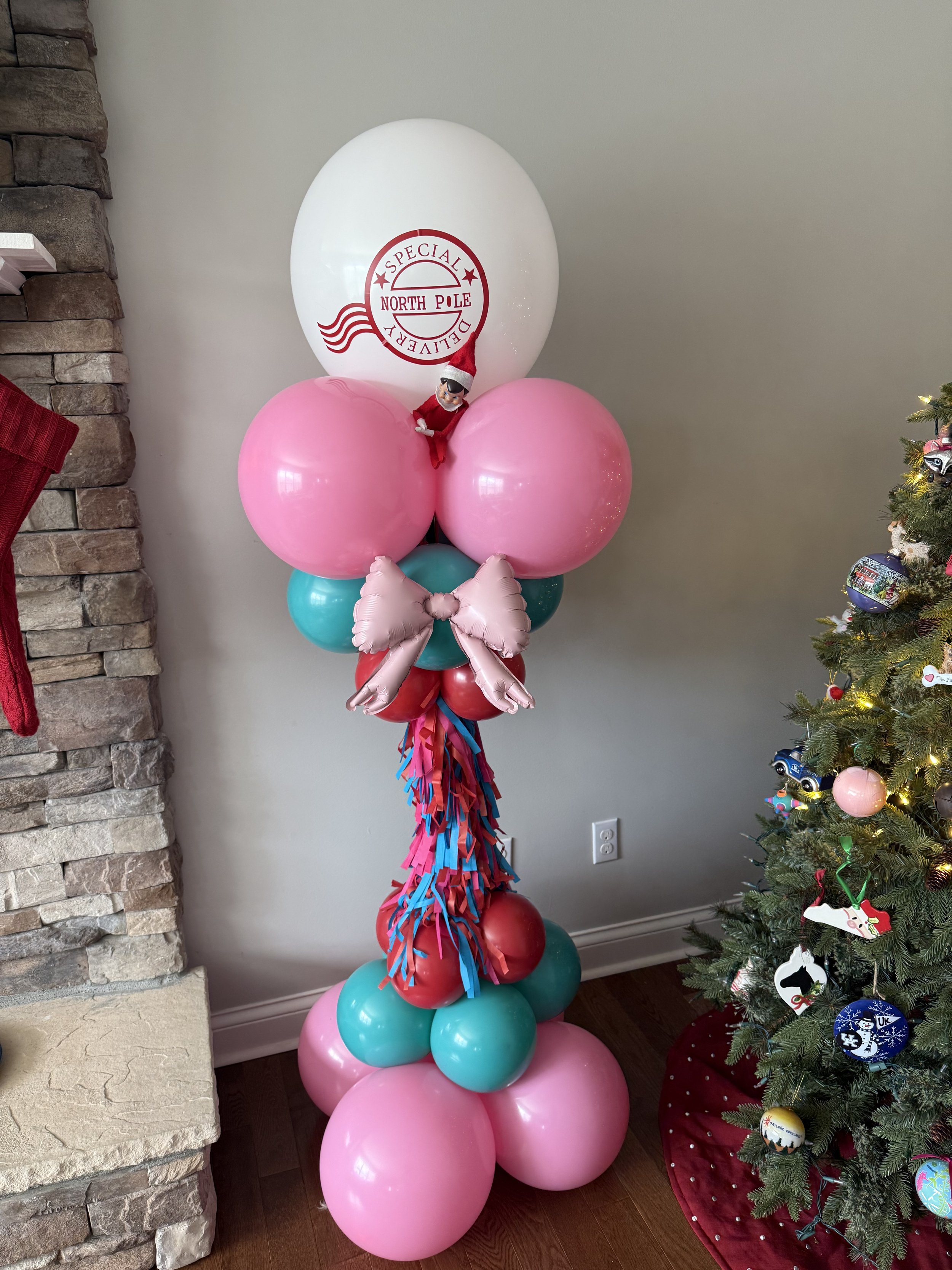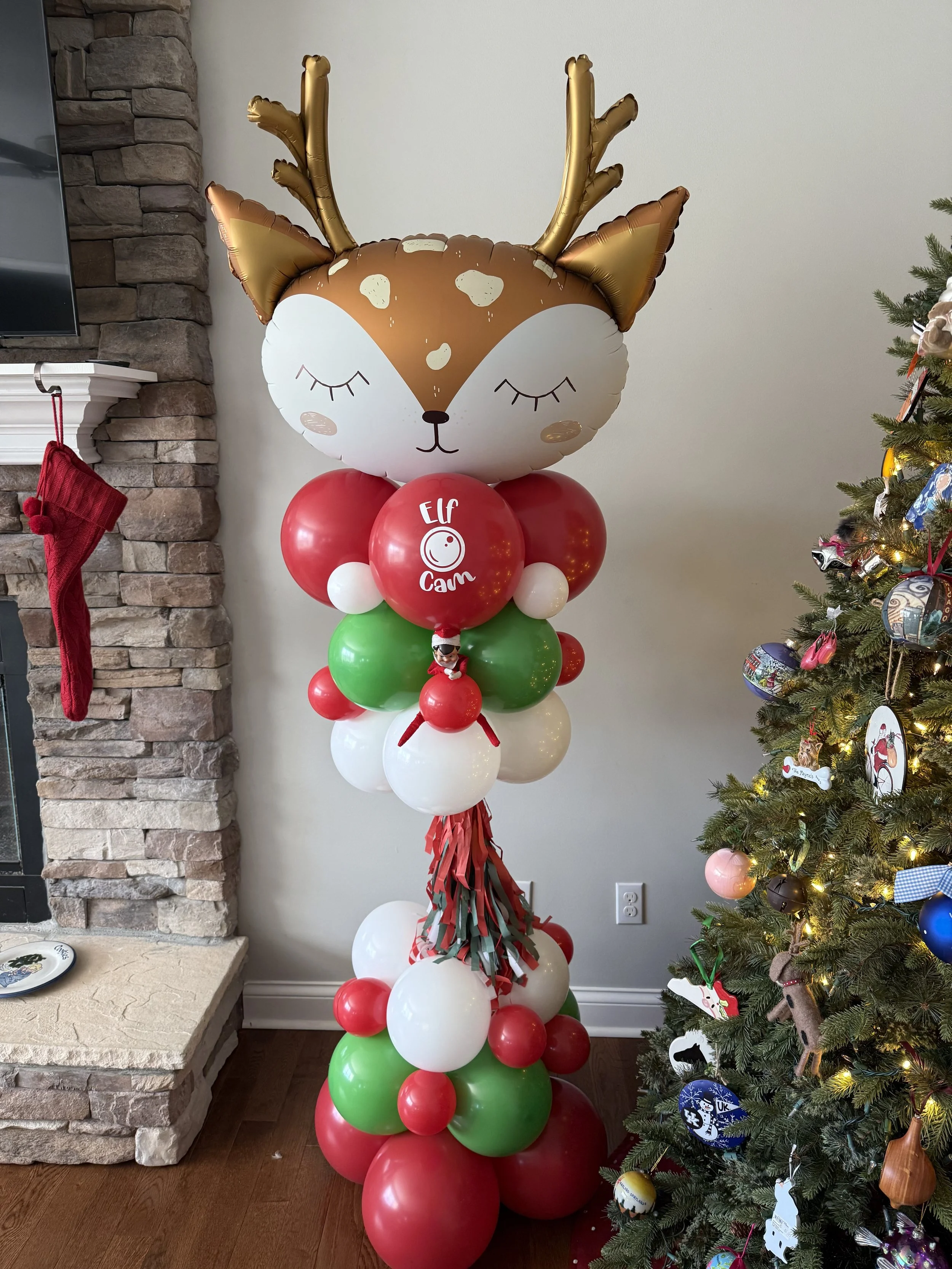 Small in size but big on holiday cheer, The Mini Drops are the sweetest way to welcome your Elf on the Shelf back home. These 2-foot balloon stacks come in coordinated sets of four; two in classic red, green, and white, and two in modern pink, teal, red, and green. Each stack features an “I’m Back!” decal to announce your elf’s return in style. Perfect for breakfast tables, mantles, or classroom surprises, these mini displays add a playful pop of Christmas cheer to any space without taking up too much room.
