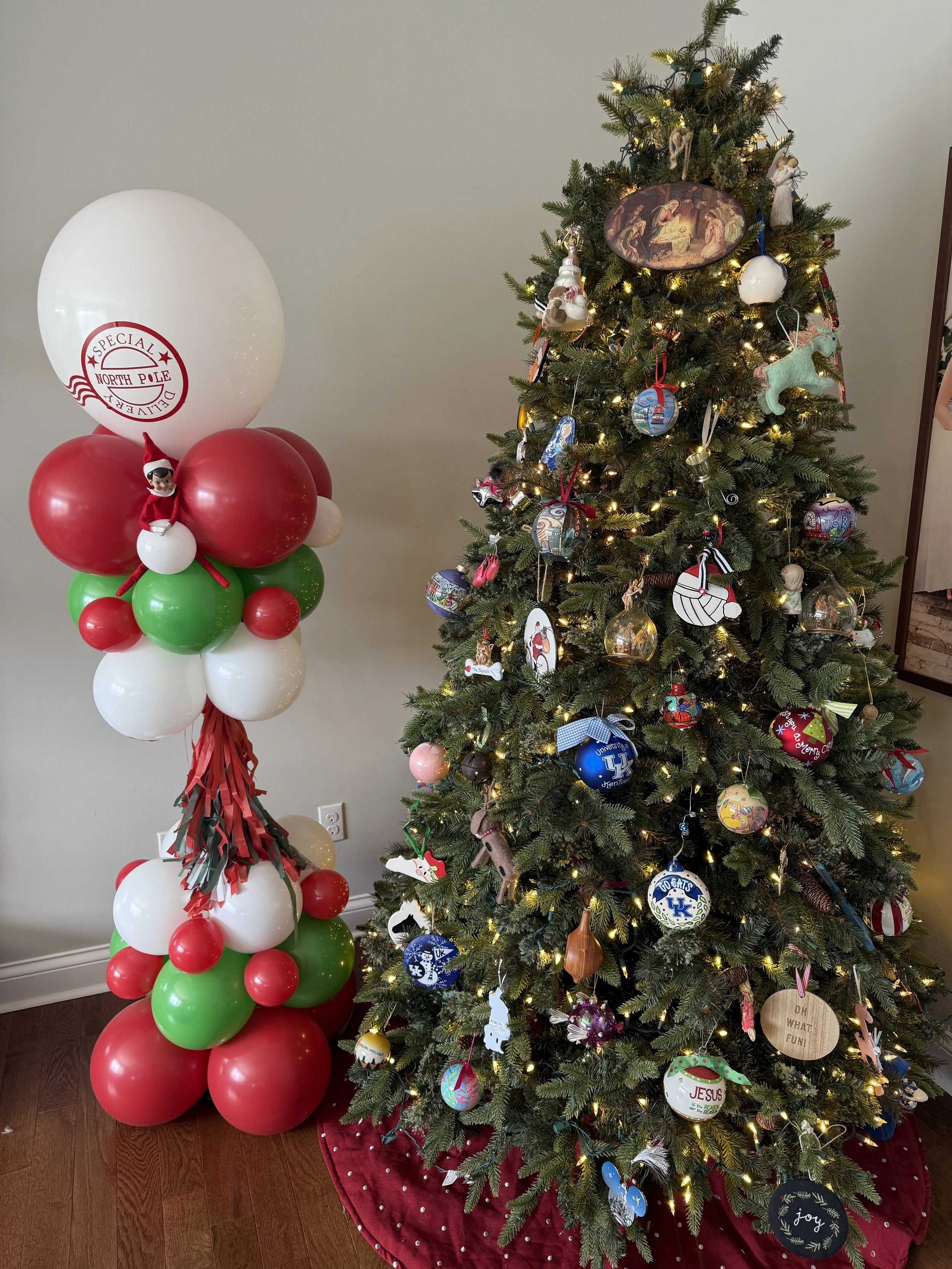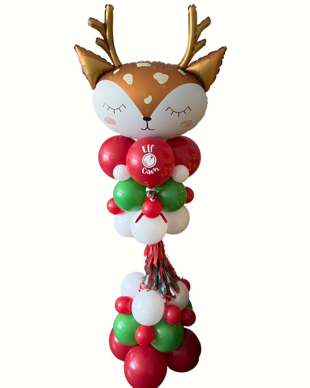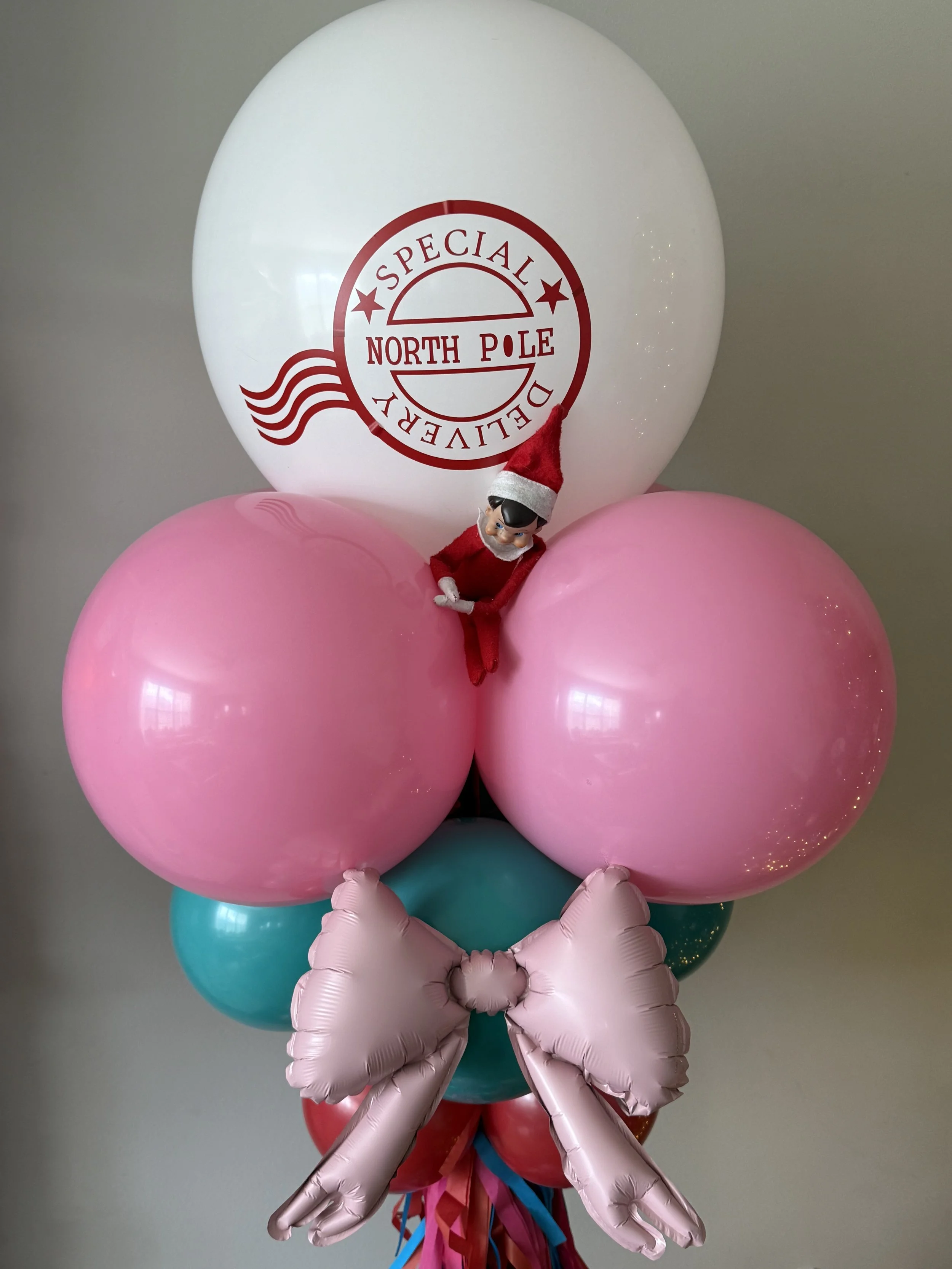 Small in size but big on holiday cheer, The Mini Drops are the sweetest way to welcome your Elf on the Shelf back home. These 2-foot balloon stacks come in coordinated sets of four; two in classic red, green, and white, and two in modern pink, teal, red, and green. Each stack features an “I’m Back!” decal to announce your elf’s return in style. Perfect for breakfast tables, mantles, or classroom surprises, these mini displays add a playful pop of Christmas cheer to any space without taking up too much room.