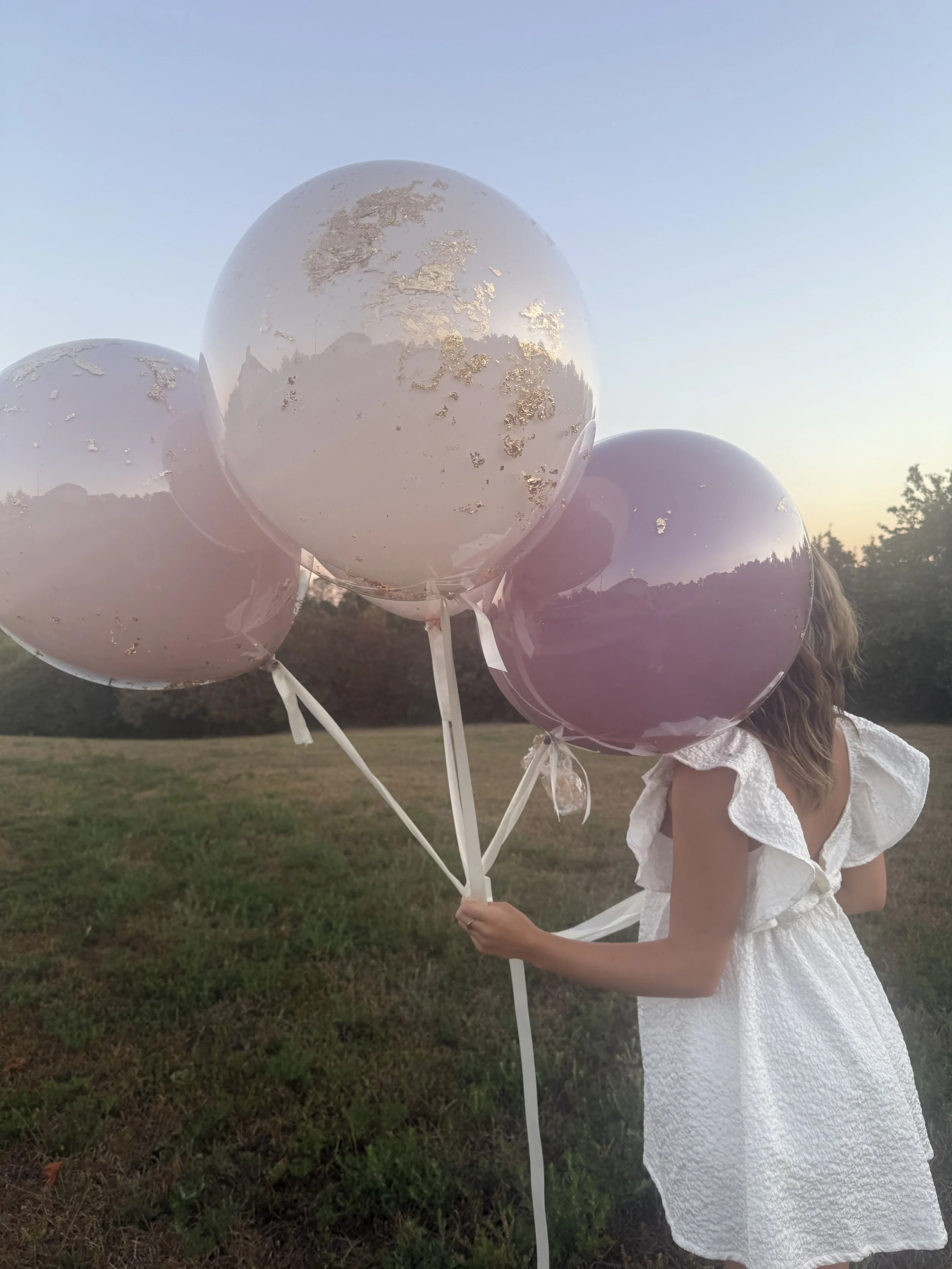 Ivy Noir is the essence of classic contrast, pure white balloons accented with refined black details. Each balloon is tied with sleek black satin ribbon and finished with hand-tied black bows, creating a look that is both striking and timeless. Anchored by a matching black satin weight, this bouquet brings modern elegance to birthdays, showers, graduations, or corporate events in Lexington.